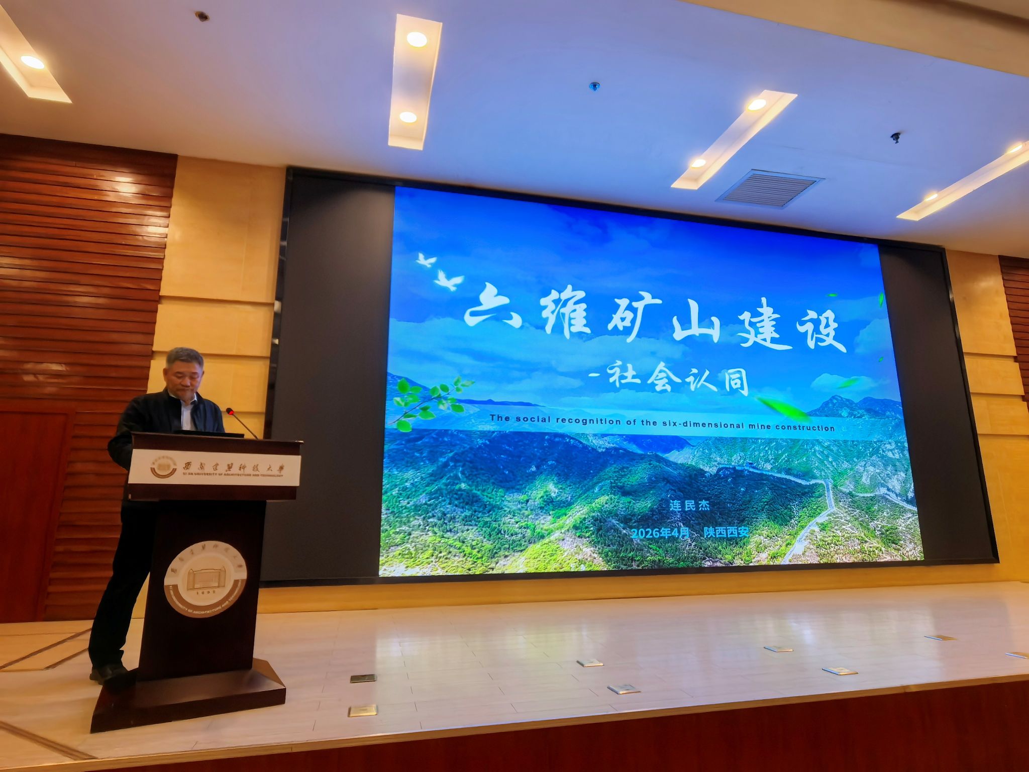 的聘任表示衷心感谢。他结合自身深耕矿山领域的研究积累,作题为《六维矿山建设-社会认同》的专题报告。报告中,连民杰教授系统提出六维矿山理念及七个标准总体要求,详细阐述六维矿山建设中的环境和谐要求,并展望校企间协同发展的广阔前景。报告结束后,参会师生围绕报告内容与连民杰教授展开热烈讨论,现场交流氛围浓厚。